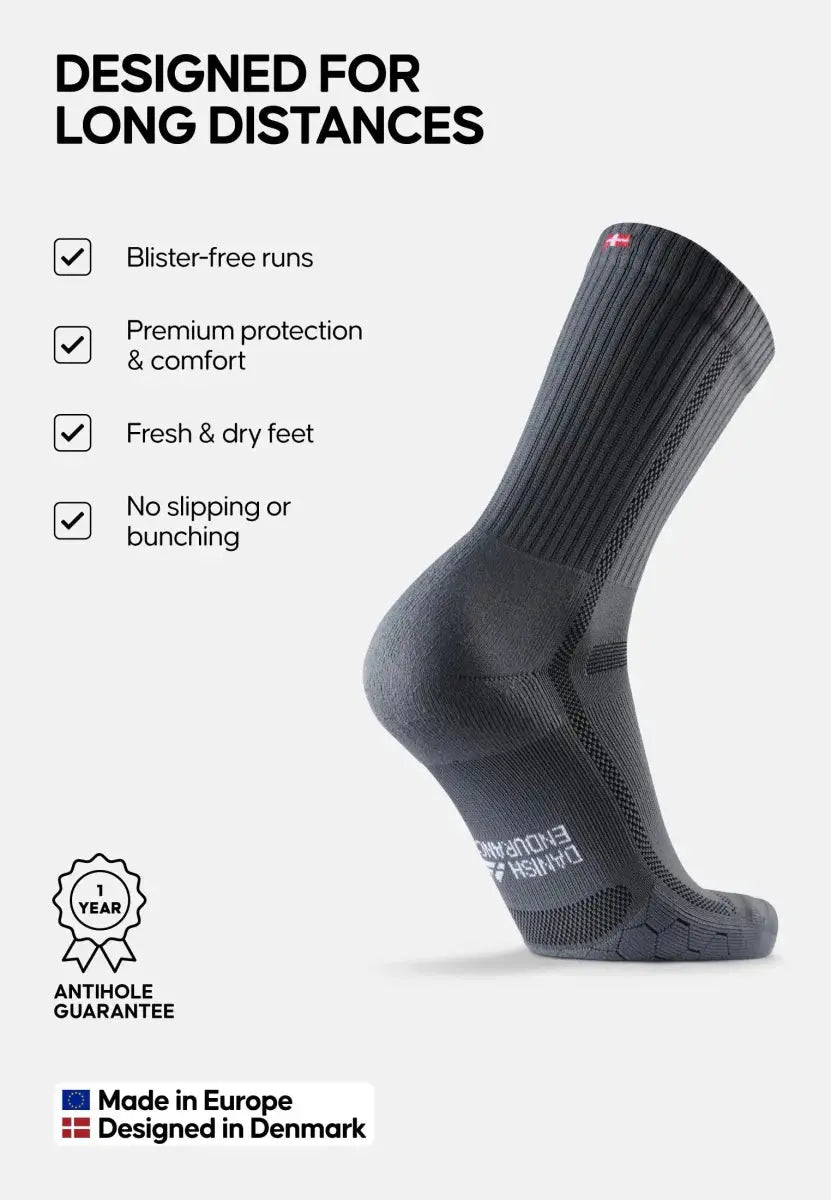 Run farther with our crew-length Long Distance Running Crew Socks. Made from breathable, sweat-wicking materials with cooling lanes, they keep your feet fresh and dry. Featuring anti-blister cushioning and arch compression, they provide premium comfort and protection for marathons, trails, and more.