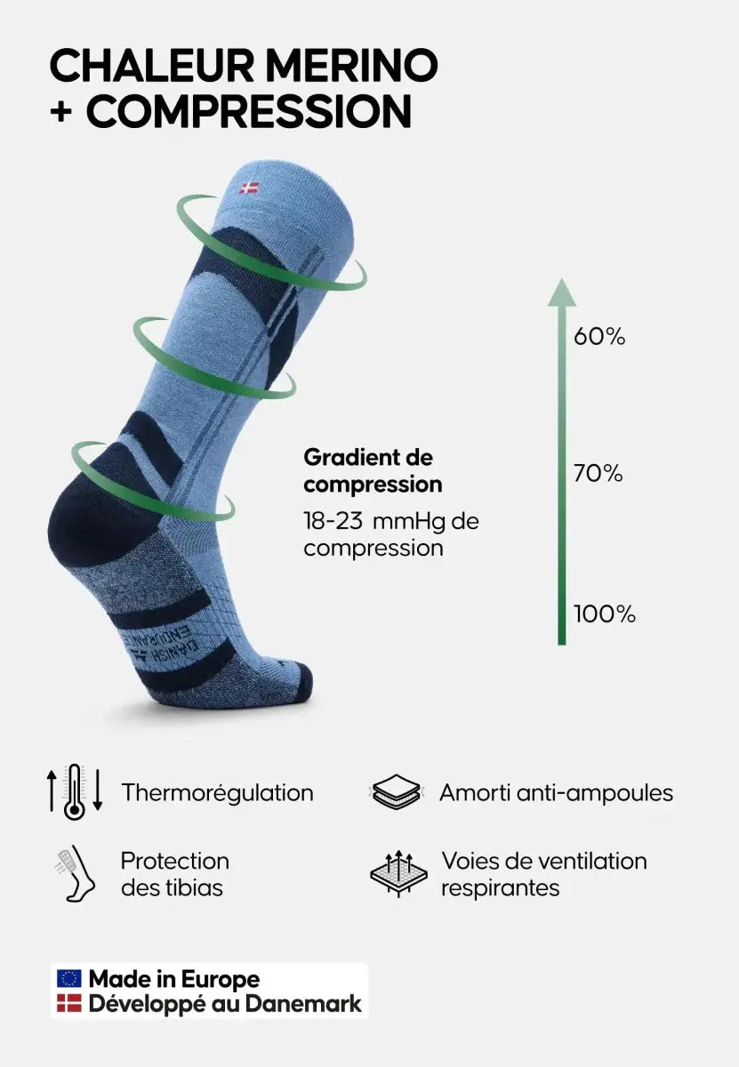 18-20 mmHg merino ski socks for fatigue reduction
