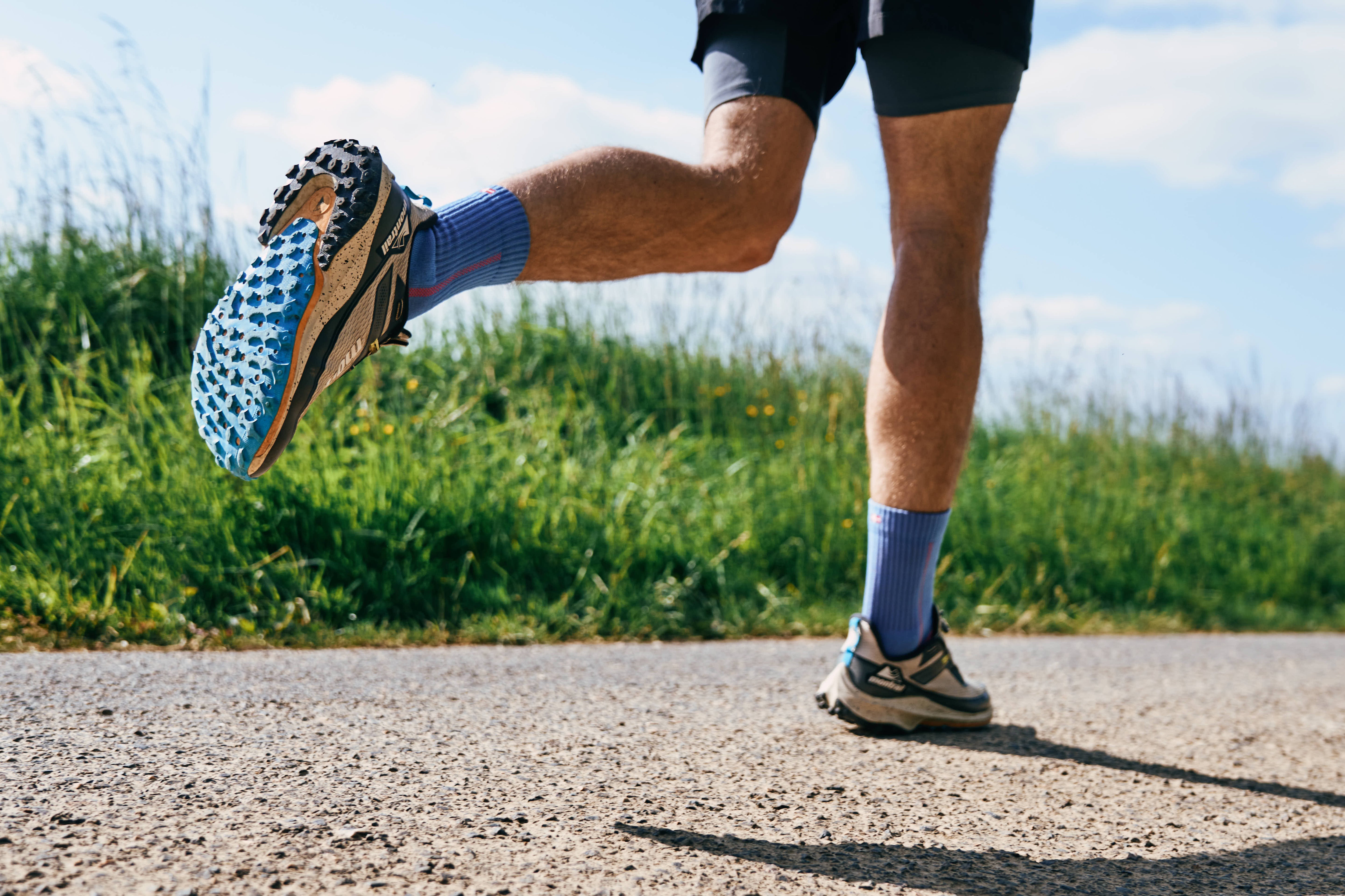 De Long Distance Running Socks — ontworpen voor lange uren op de voeten, wisselend terrein en de constante afwisseling tussen snelheid en een gelijkmatig tempo. Ontworpen om wrijving te minimaliseren en comfort te maximaliseren, boden ze Amaury en Louis de ondersteuning die ze van begin tot eind nodig hadden.